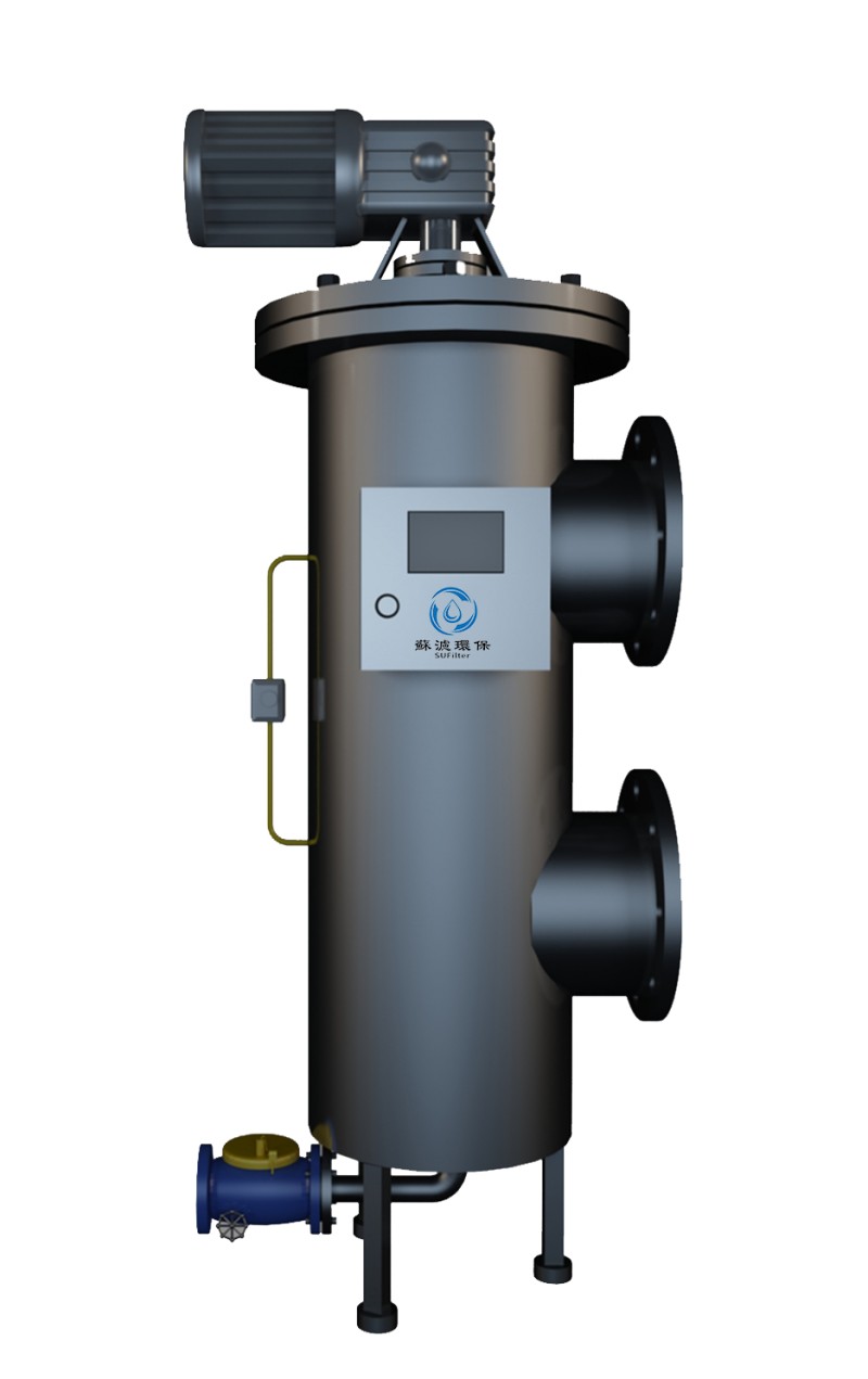 水或其他液體由全自動(dòng)自清洗過濾器的進(jìn)水口進(jìn)入設(shè)備的機(jī)體內(nèi)部,通過過濾網(wǎng)將水或其他液體中的所需過濾雜質(zhì)攔截,過濾后的水或其他液體通過全自動(dòng)自清洗過濾器的出水口排出,雜質(zhì)則滯留在濾網(wǎng)內(nèi)側(cè),隨著雜質(zhì)的積累,過濾器的進(jìn)出口壓力差會(huì)隨之變大,通過設(shè)備的壓差開關(guān)檢測此數(shù)值,當(dāng)此數(shù)值達(dá)到壓差開關(guān)預(yù)設(shè)值時(shí),壓差開關(guān)會(huì)通過傳輸線傳送信號(hào)至電控柜,電控柜再分出信號(hào)給清洗部件(轉(zhuǎn)刷或吸污口)和排污閥,此時(shí)由清洗部件對(duì)濾網(wǎng)內(nèi)側(cè)表面進(jìn)行徹底清洗,再由排污閥將雜質(zhì)及部分液體從設(shè)備內(nèi)部排出,可根據(jù)首次壓差啟動(dòng)間隔時(shí)間對(duì)設(shè)備的電控柜的時(shí)間控制進(jìn)行設(shè)定,此后可通過時(shí)間及壓差雙重控制,對(duì)設(shè)備的清洗周期進(jìn)行控制,從而雙重保證設(shè)備的清洗效果及系統(tǒng)的正常運(yùn)行。